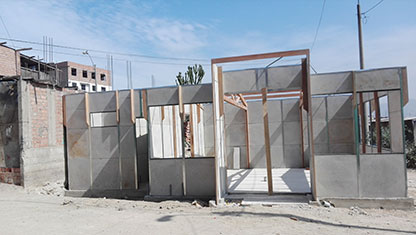 El sistema constructivo "Viviendo Bien" es un sistema no convencional de edificación prefabricada, cuya configuración estructural se basa en muros prefabricados de placas de concreto simple de 3cm de espesor, confinados por perfiles plegados de acero dobladas en frío que a su vez son arriostrados transversalmente por vigas de madera y arriostres tubulares metálicos en las esquinas del módulo.