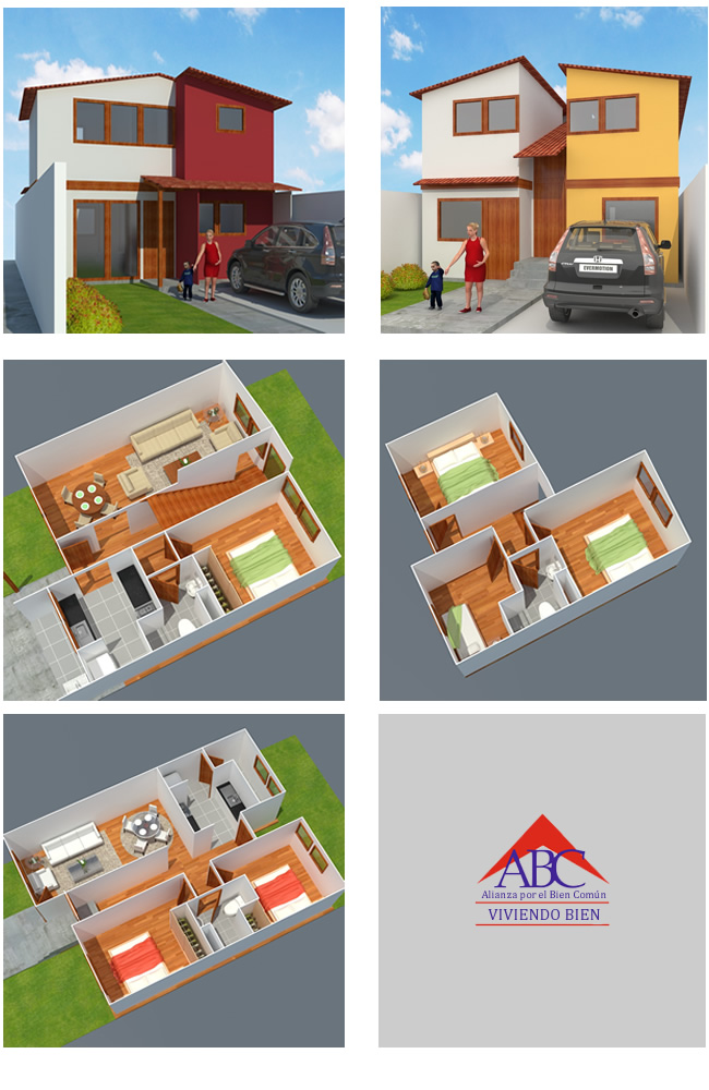 La vivienda tiene las siguientes características: Losa de concreto de 10cm. Muros de plaquetas de concreto y perfiles metálicos. Techo viguetas de madera, machihembrado de madera y cobertura de fibrocemento. Instalaciones eléctricas e instalaciones sanitarias, carpintería de madera de puertas y ventanas, piso de cemento pulido, enchape cerámico de baño, vidrios.